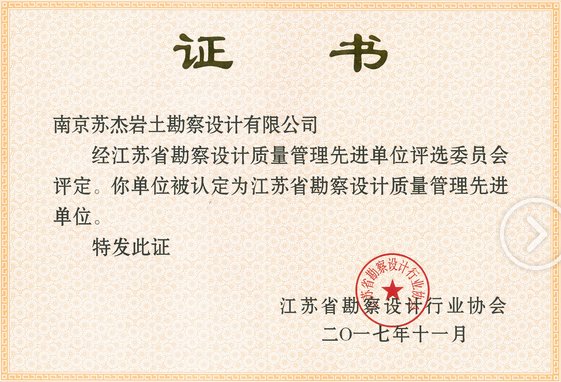 江蘇省勘察設計質(zhì)量先進(jìn)單位