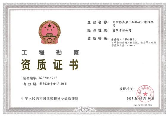 工程勘察專(zhuān)業(yè)甲級證書(shū)